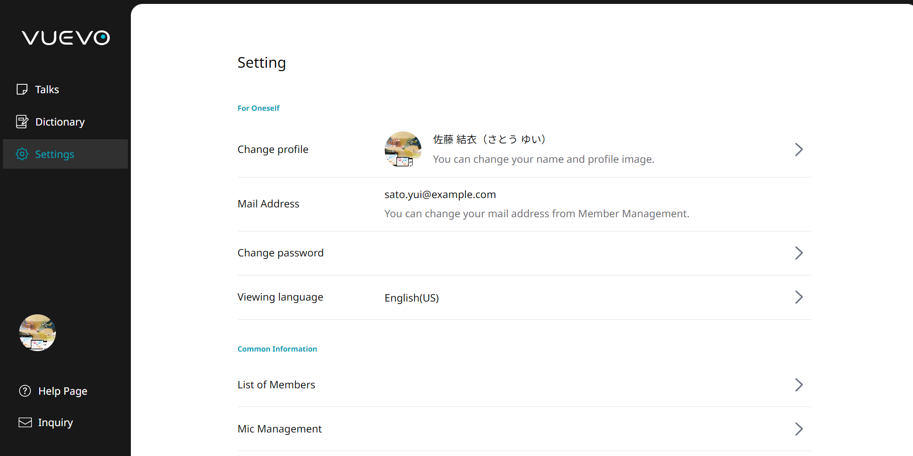 VUEVOの翻訳機能を使うときに、表示したい言語を選びます。