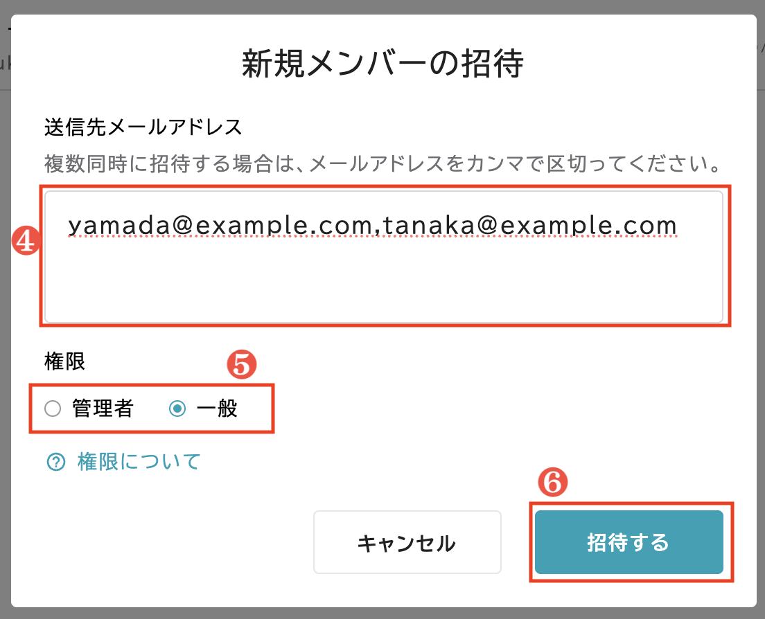 ※複数のメンバーを同時に招待する場合は、メールアドレスをカンマで区切って入力してください。