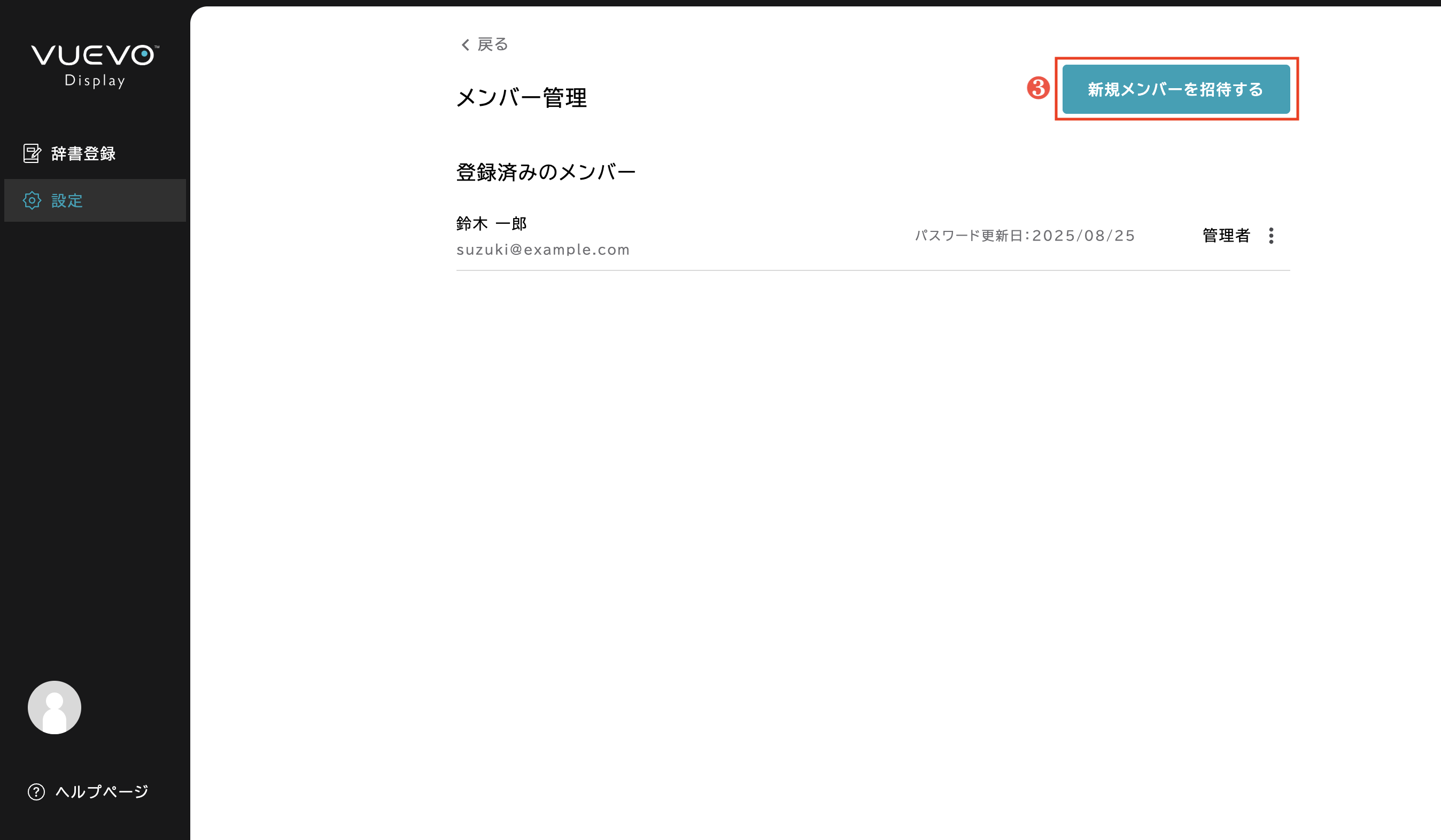 ・新規の管理者メンバー招待は、管理者権限があるメンバーにしかできません。